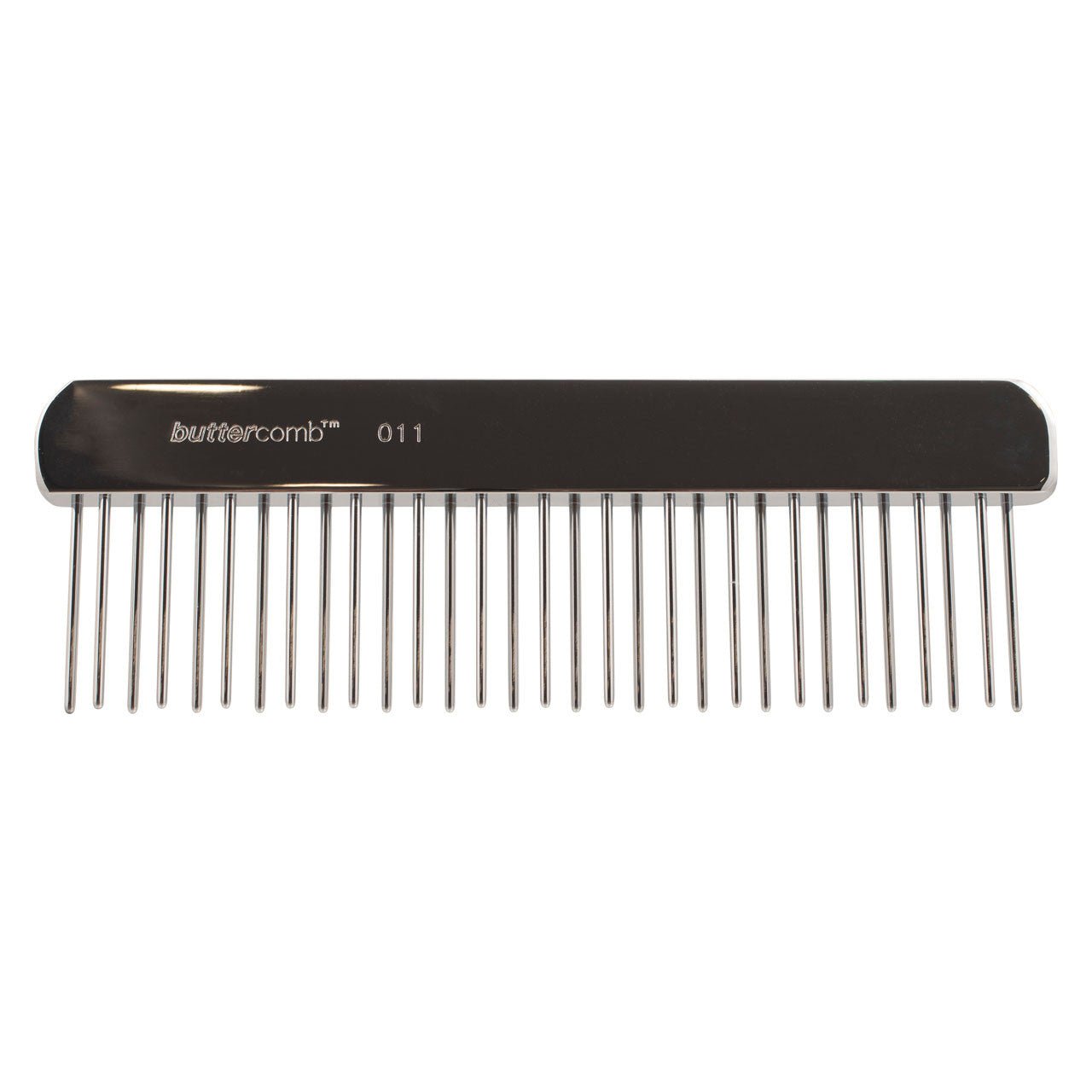 This Chris Christensen Buttercomb is designed to quickly and safely remove mats and tangles from your pet’s coat. This heavyweight de-matting comb uses it’s own weight to glide through the coat without breakage.
