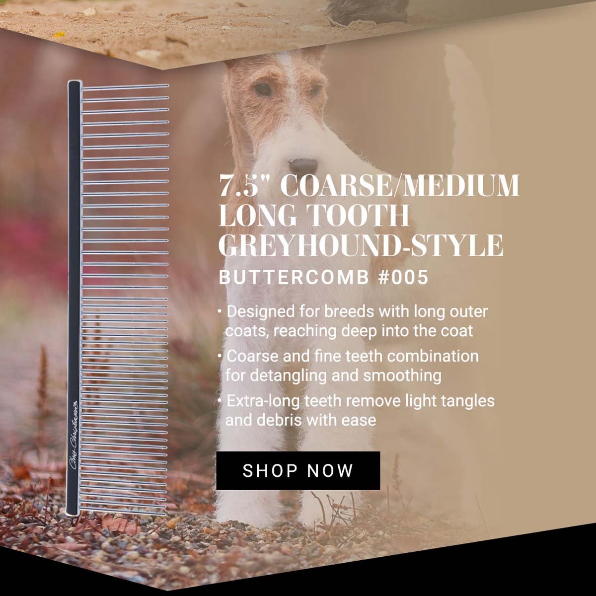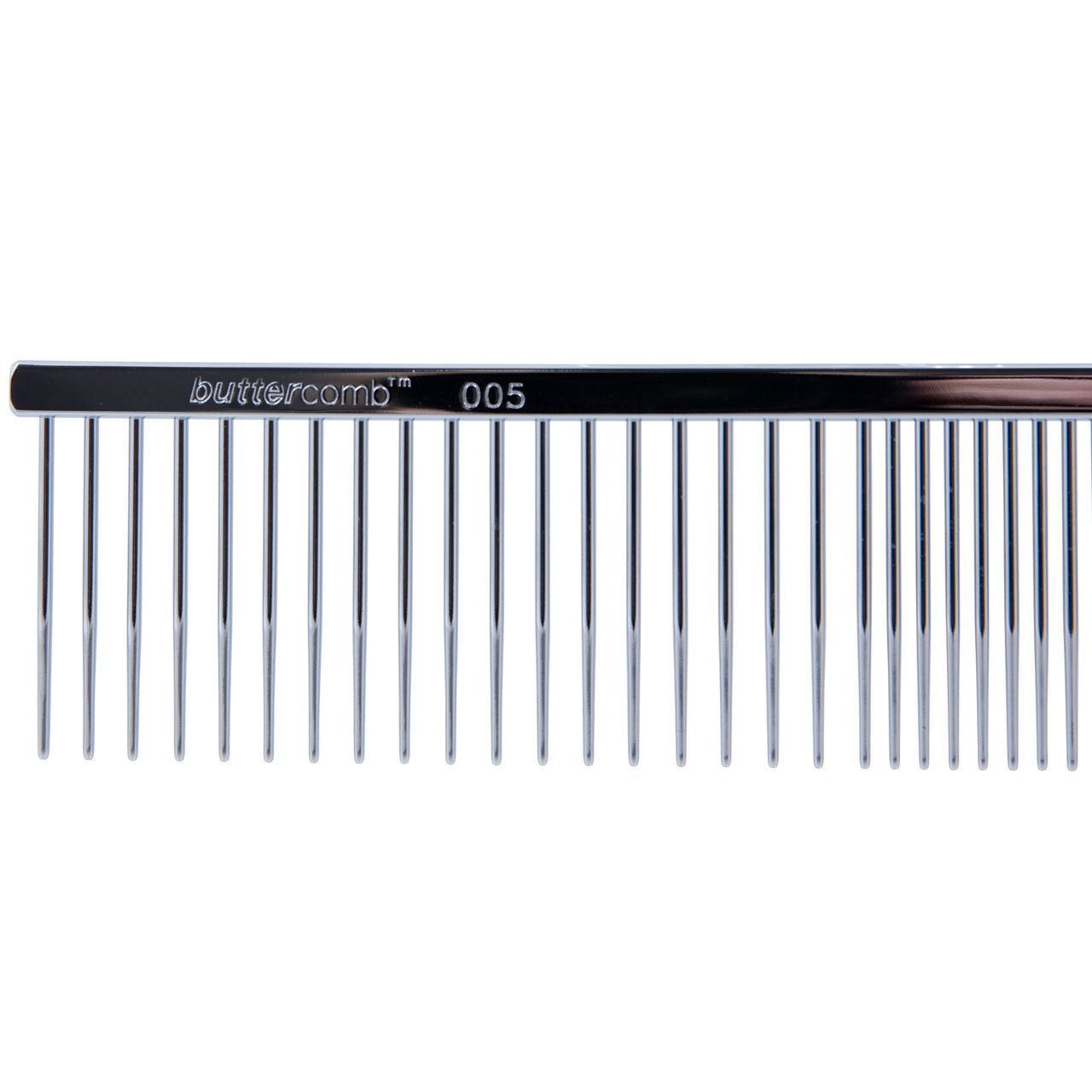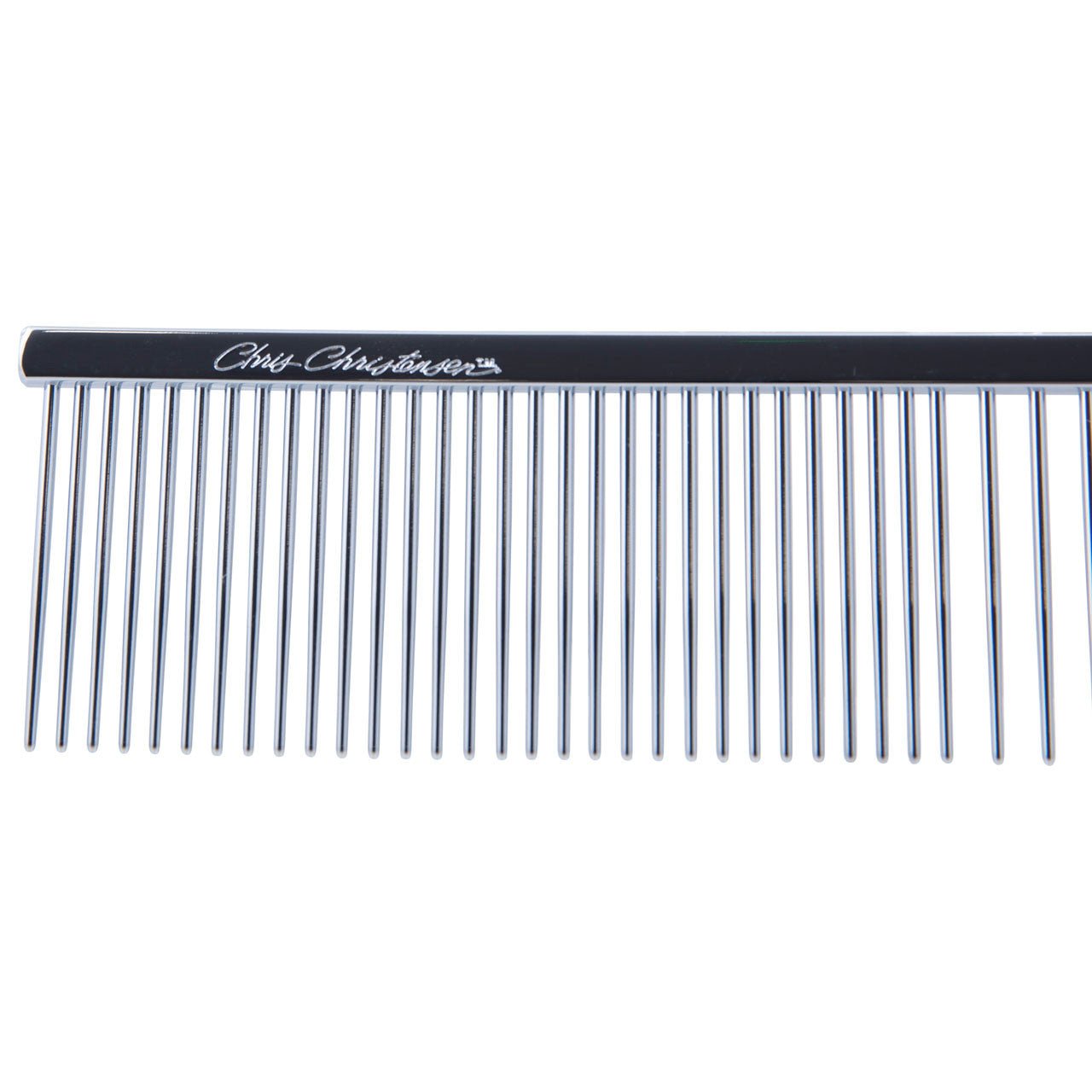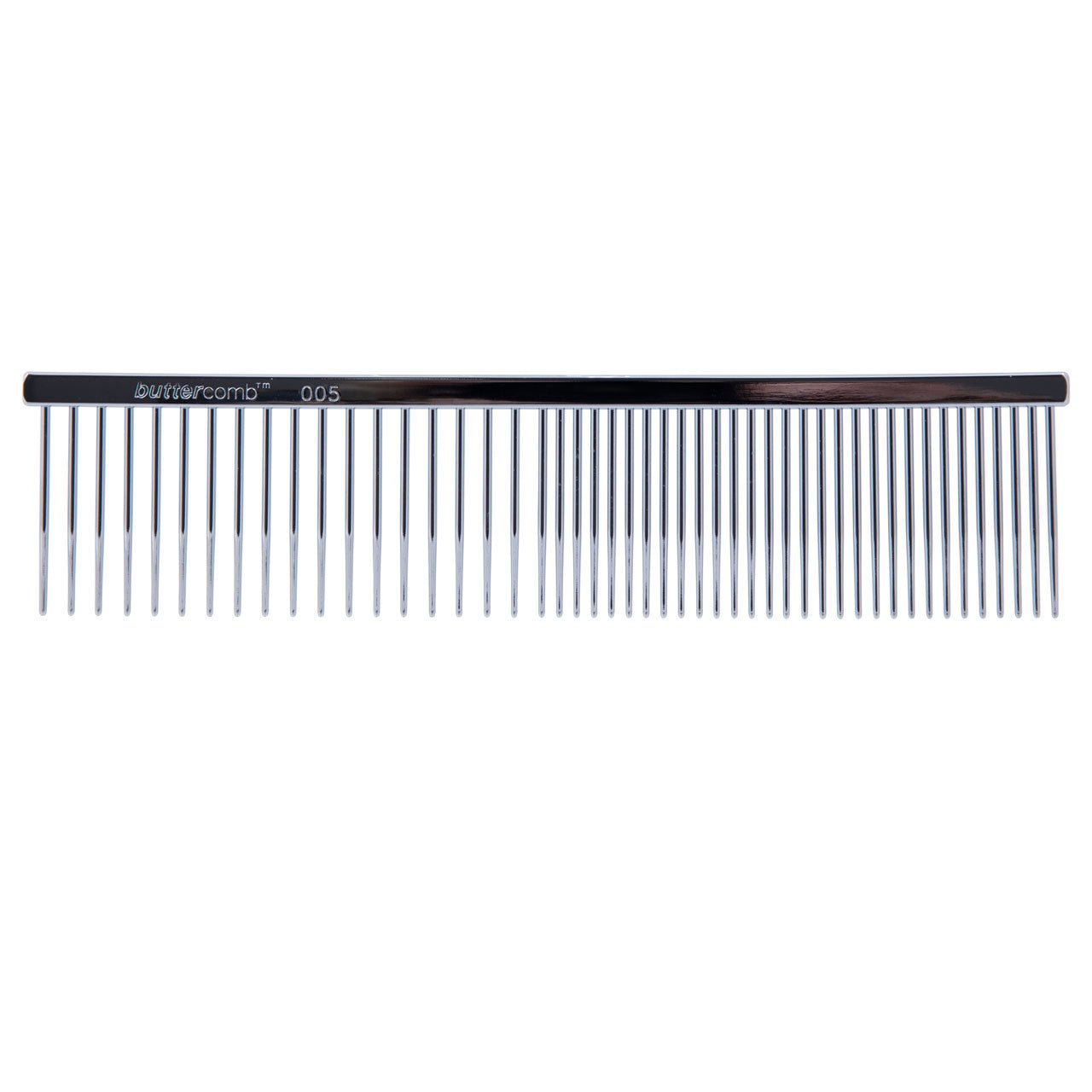 This Chris Christensen Greyhound-Style Combination Buttercomb is perfect for every day maintenance and styling for breeds with a long outer coat. The long teeth go deep into the coat to remove light tangles and debris. This versatile combination comb glides gently through the coat without snagging or breakage.